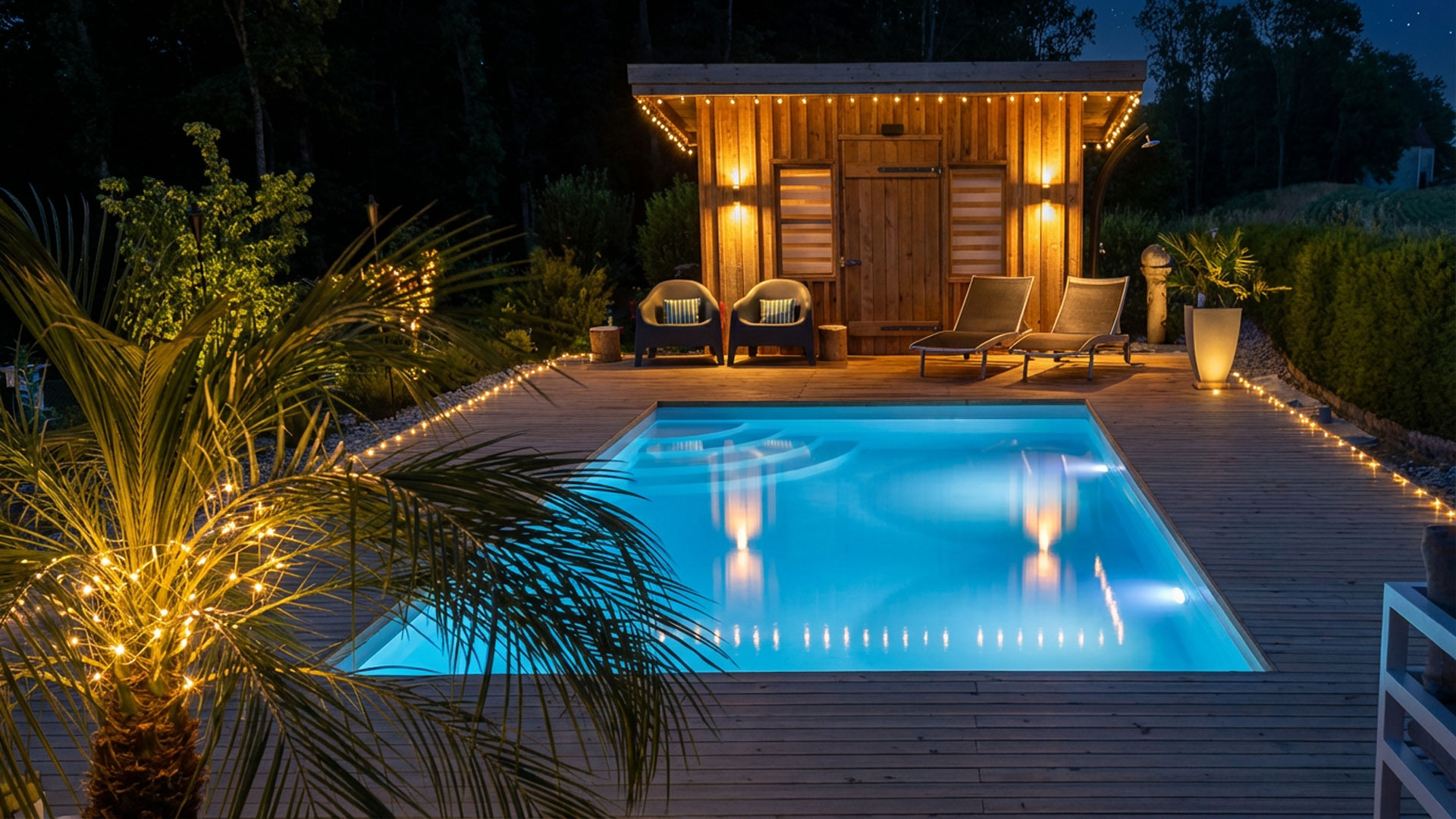 - moderner Night-Pool mit Unterwasserbeleuchtung