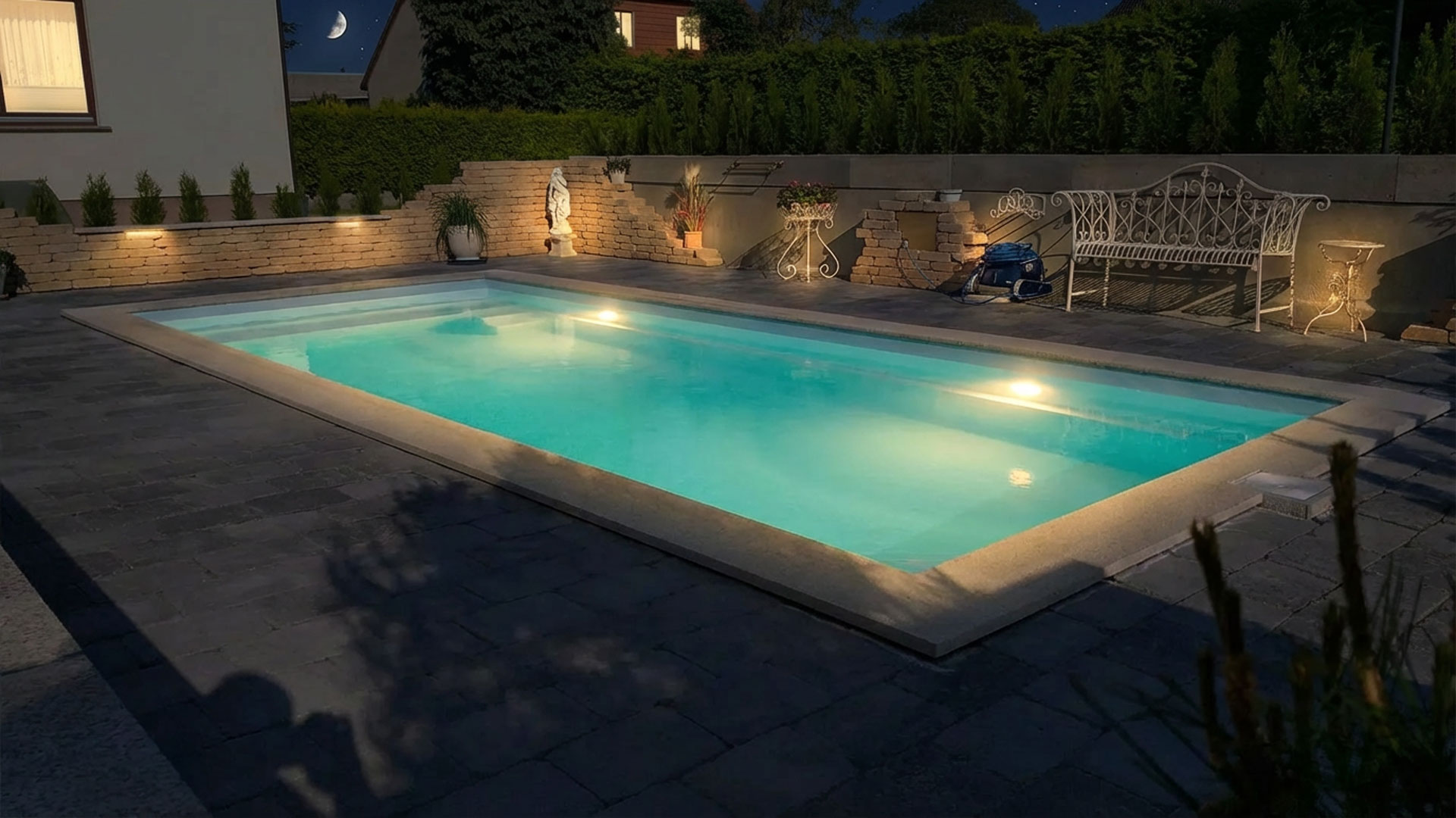 Unsere Poolprojekte reichen von eleganten GFK-Becken über energieeffiziente Techniklösungen bis zu luxuriösen Komplettanlagen mit Terrasse, Überdachung, Heizung oder LED-Beleuchtung. Ob kleiner Stadtgarten oder großzügiges Grundstück: Wir planen und bauen genau den Pool, der zu Ihnen und Ihrem Zuhause passt.
